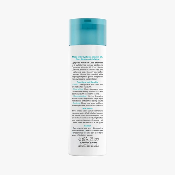 شامپو ضد ریزش سیسپرسا | تقویتکننده قوی موها با فرمولاسیون فاقد سولفات | ۲۵۰ میلیلیتر