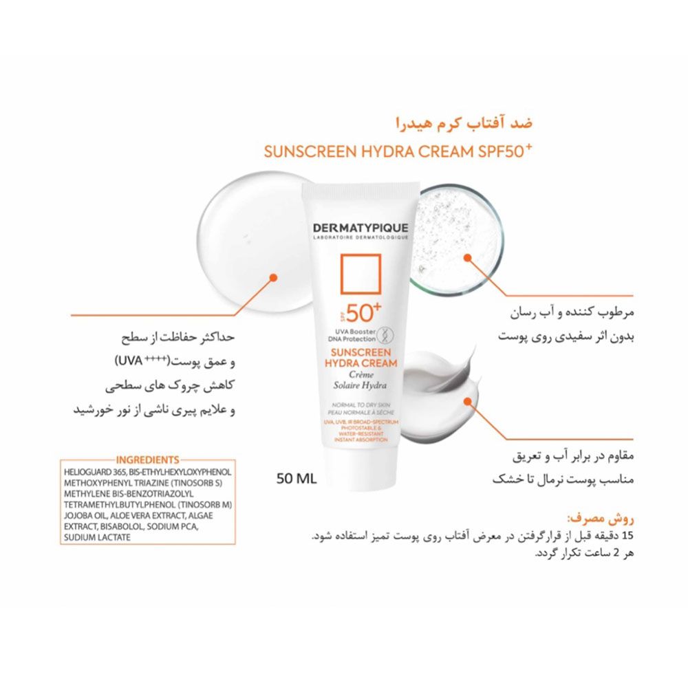 ضد آفتاب بی رنگ هیدرا مناسب پوست خشک +SPF50 درماتیپیک(فتوتیپیک)