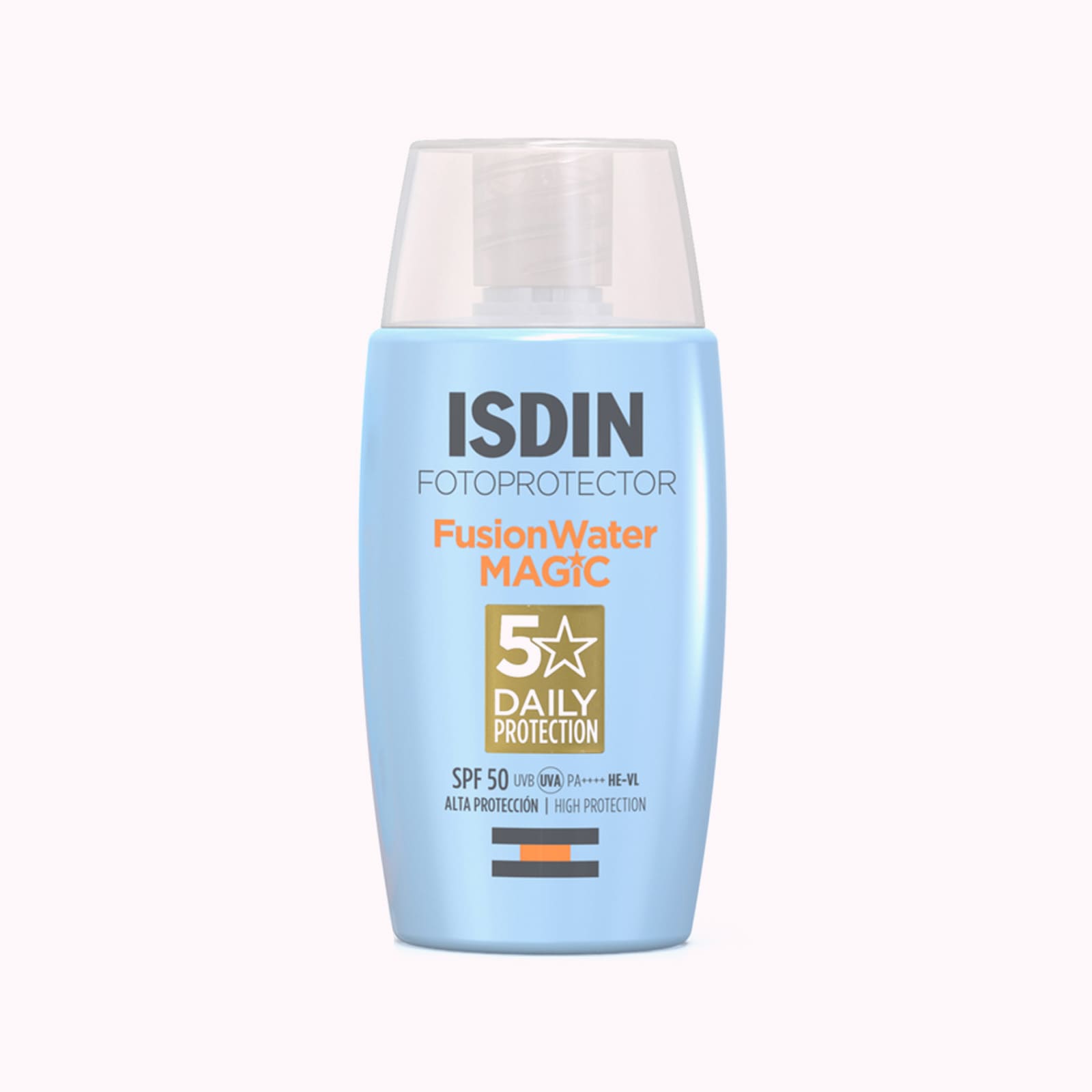 ضدآفتاب فیوژن واتر مجیک ایزدین یکی از انواع ضد آفتاب های برند ایزدین است که بافتی فوق العاده سبک و زود جذب روی پوست داشته و برای استفاده روزانه ایده آل است. این ضد آفتاب علاوه بر محافظت بالا از پوست در برابر اشعه های مضر نور خورشید با SPF50، پوست را رطوبت رسانی کرده، چربی آن را کنترل میکند و دارای خاصیت آنتی اکسیدانی است. ضد افتاب ایزدین مجیک برای پوستهای چرب ایده آل است، فاقد روغنهای معدنی است، جلوهای کاملا مات روی پوست دارد و احساس چربی و سنگینی ایجاد نمیکند.