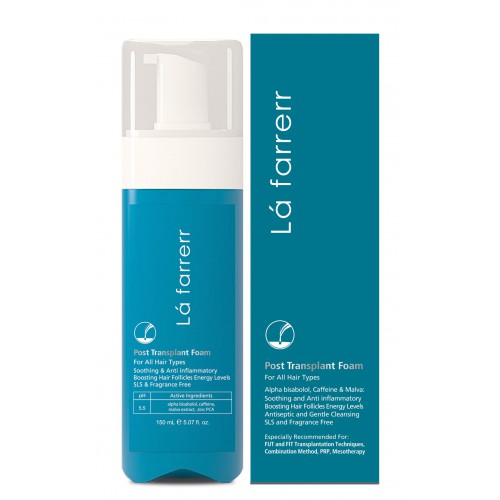 فوم پس از کاشت مو لافارر، حاوی آلفابیزابولول ، کافئین ، عصاره مالوا ، زینک – پی سی ای است، که ضمن شویندگی و پاککنندگی ملایم و مطمئن، باعث تقویت و افزایش استحکام و انرژی فولیکول های تازه پیوند شده می شود و به تسریع روند بهبودی زخم ها و ترمیم بافت پوست کمک میکند.