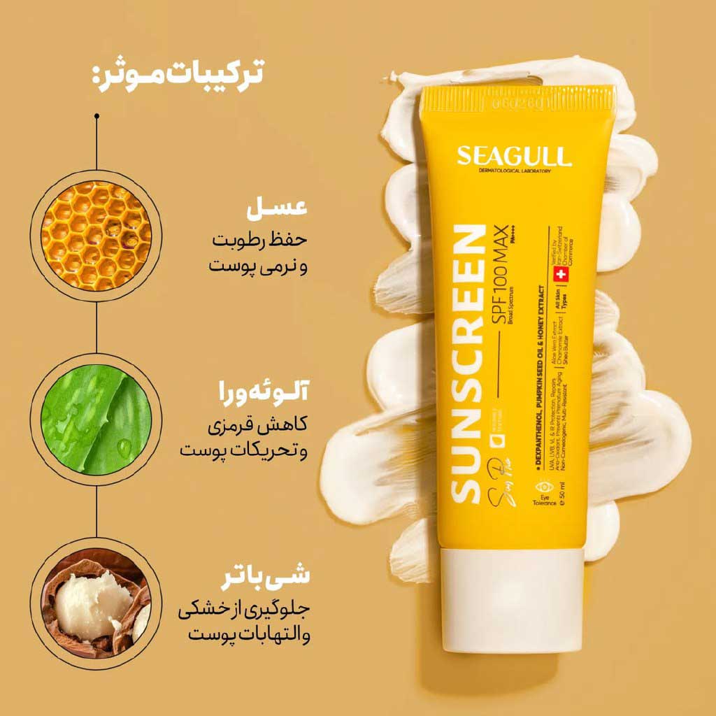 کرم ضد آفتاب فاقد رنگ سی گل با SPF 100 حجم 50 میل