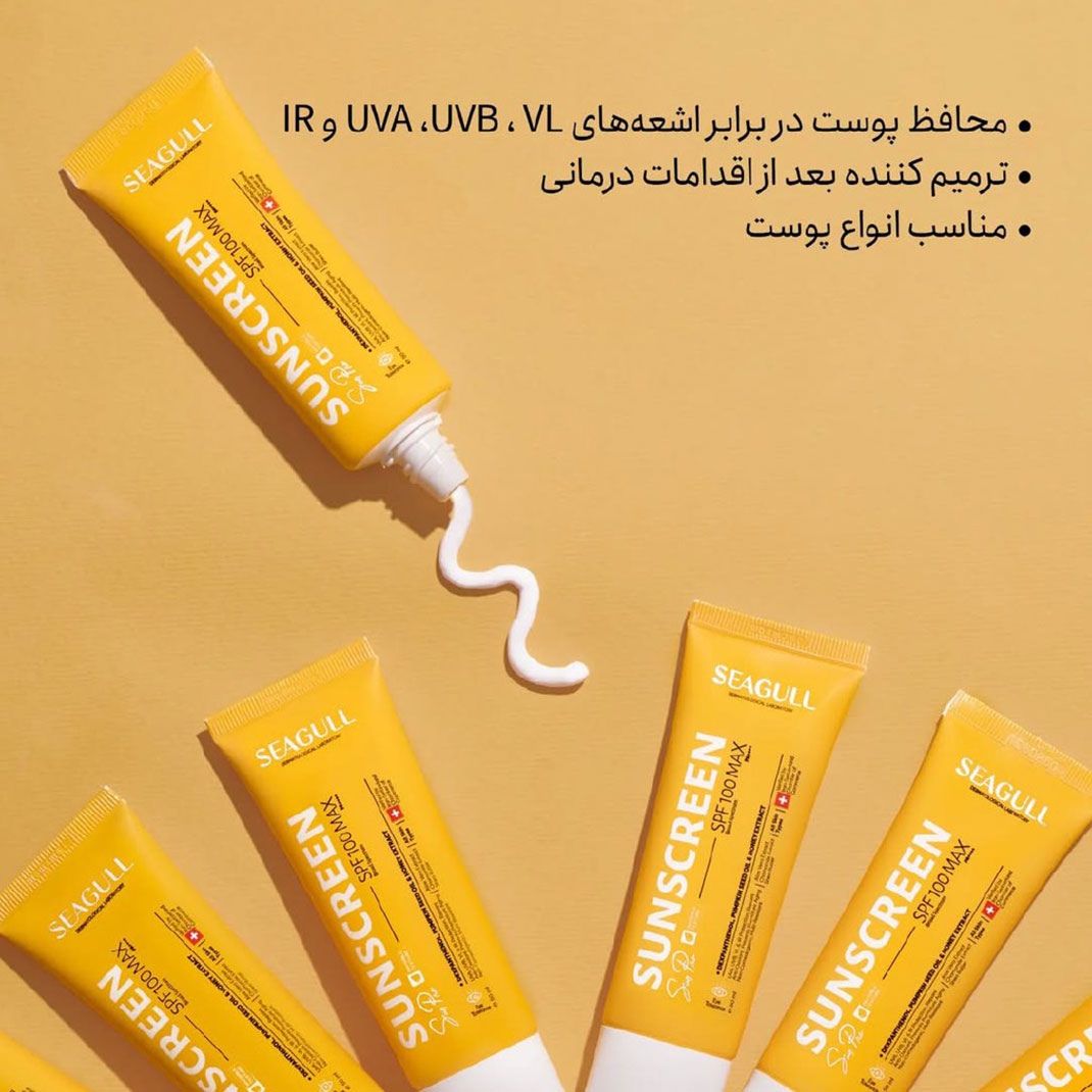 کرم ضدآفتاب فاقد رنگ SPF 100 سی گل با فرمولاسیونی خاص، از پوست در برابر اشعههای مضر UVA، UVB، VL و IR محافظت میکند و با مهار رادیکالهای آزاد، از پیری زودرس پوست جلوگیری میکند. این کرم حاوی ترکیبات ترمیمکننده، مناسب برای استفاده پس از درمانهای پوستی مانند لیزر، پیلینگ و میکرودرم اَبریژن است. فیلترهای مقاوم در برابر تابش نور، حفاظت طولانیمدتی ایجاد میکنند.
